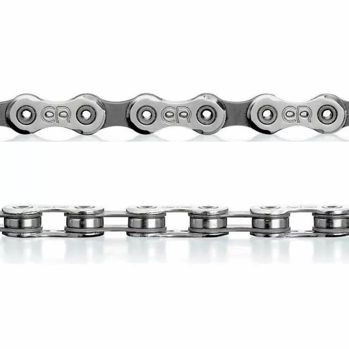 Record Ultra Narrow-kæden med 10 gear reducerer kædestøj og er lettere at justere. Kædeleddene og -benene er hule, så kæden vejer kun 255 gram.